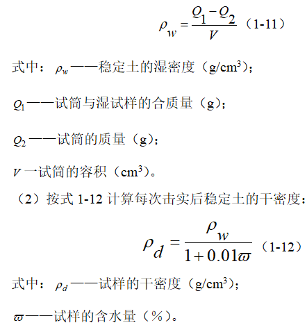 (3)湿法(土不重复使用),对于高含水量土,可省略过筛,栋除大于38mm的粗石子即可。保持天然含水量的第一土样,可立即用于击实实验。其余几个试样,分别风干不同时间,使含水量按2~3%的递减。