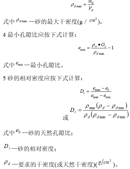 砂的相对密度试验是进行砂的最大于密度和最小干密度试验,砂的最小干密度试验宜采用漏斗法和量筒法,砂的最大干密度试验采用振动锤击法。