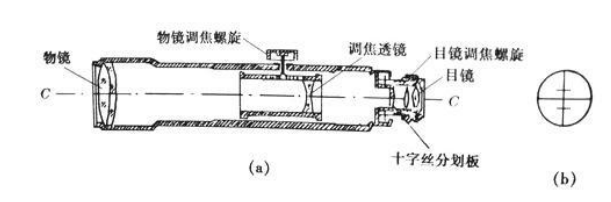 2.调整望远镜调焦透镜,使目标清晰成像在十字丝分划板上。