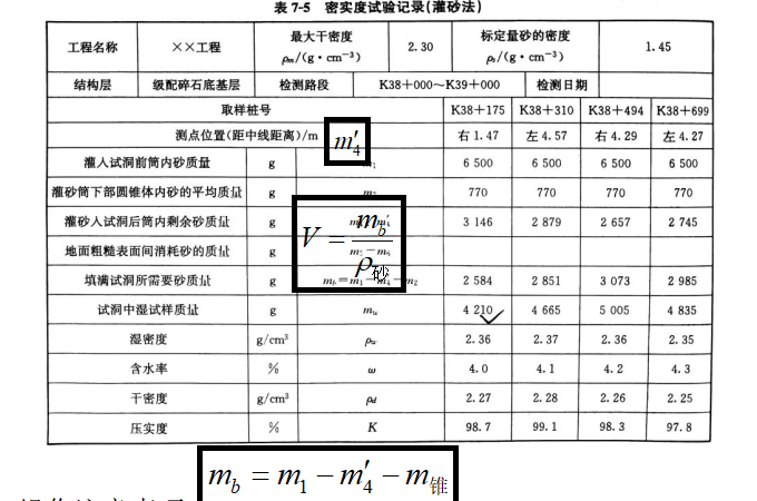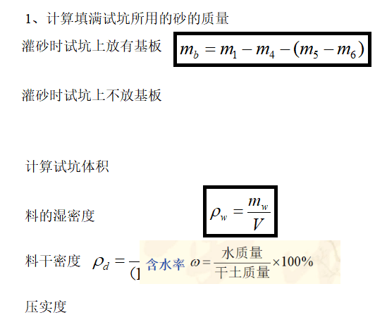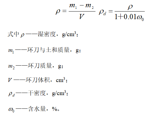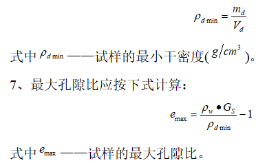 5、取上述两种方法测得的较大体积值,计算最小干密度。