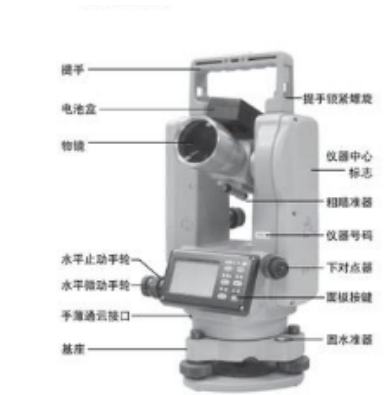 1.熟悉电子经纬仪的基本构造和各部件功能。