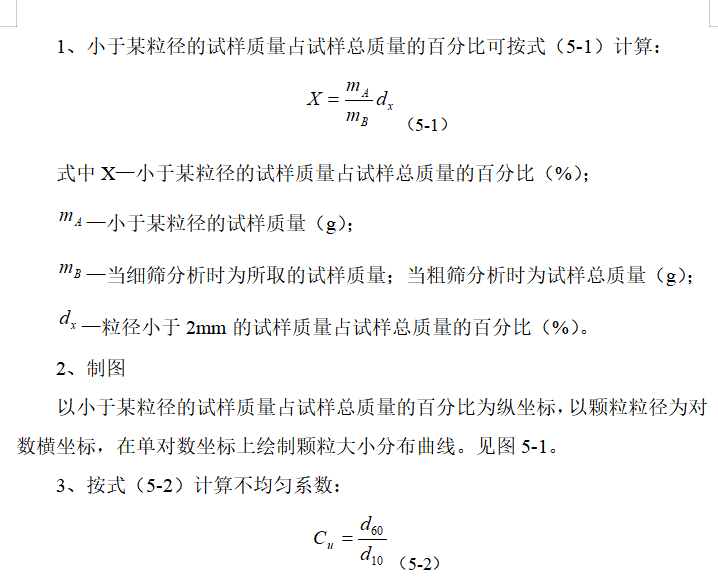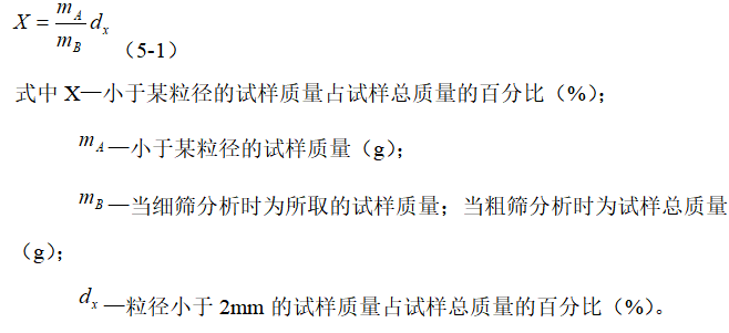 (1)将按表5-1称取的试样过孔径为2mm的筛,分别称取留在筛子上和已通过筛子孔径的筛子下试样质量。当筛下的试样质量小于试样总质量的10%时,不作细筛分析;当筛上的试样质量小于试样总质量的10%时,不作粗筛分析。