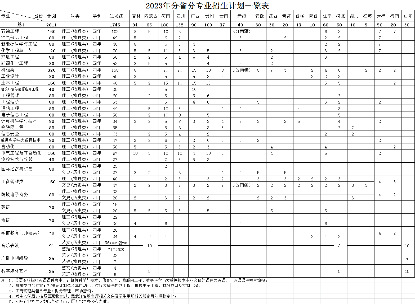 2023年分省分专业招生计划一览表