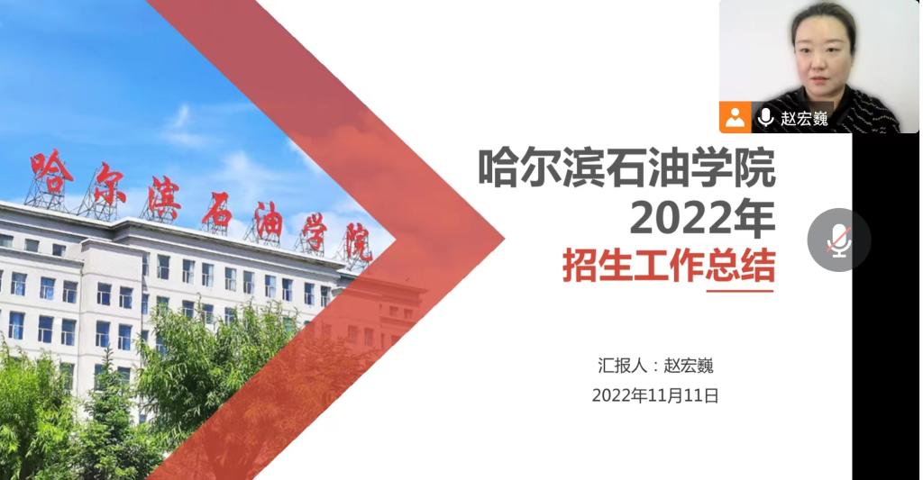 会上,招生与校友联络处副处长赵宏巍汇报了伟德官网2022年招生工作整体情况,针对工作中的主要做法、面临的问题及解决方案进行了系统的介绍。