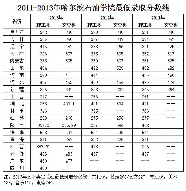 2011-2013年伟德bv国际体育各省区最低录取分数
